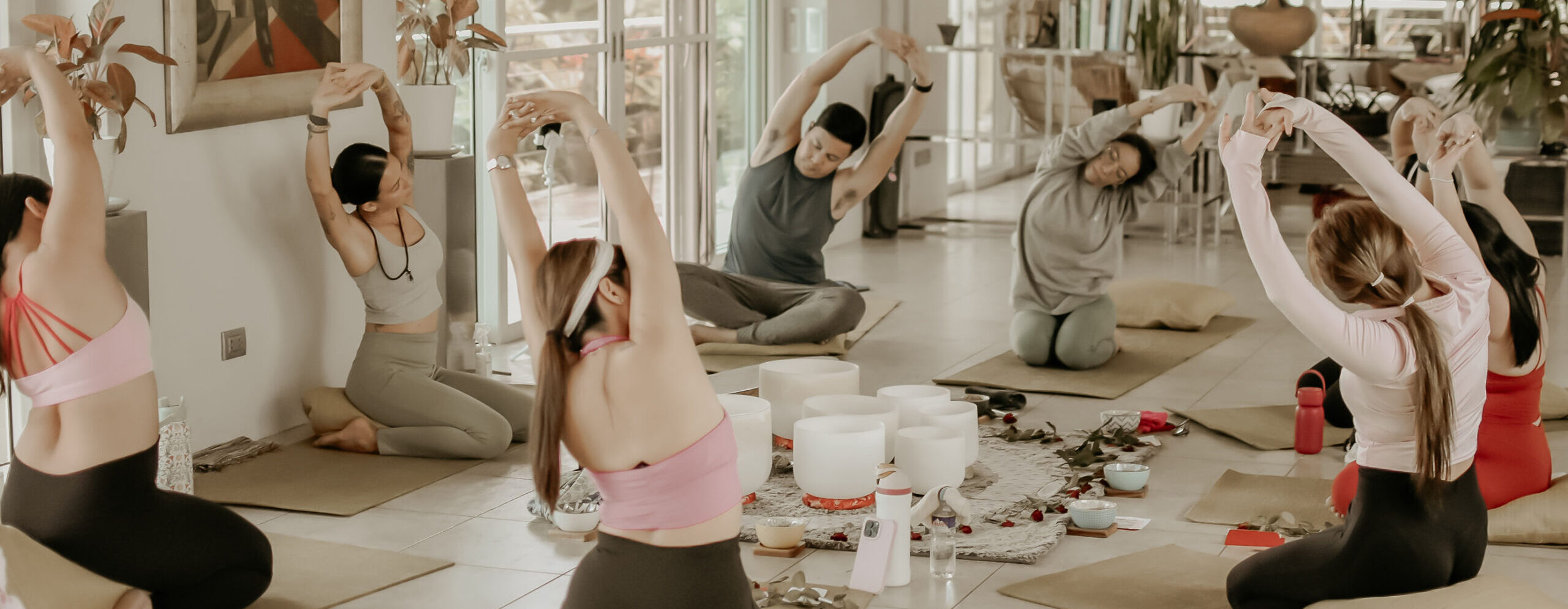 Wear comfortable clothes for yoga and bring a reusable water bottle.